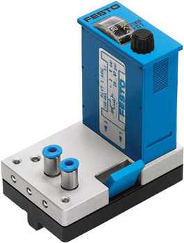 The time delay valve is made up of a pneumatically operated 3/2-way valve, a one-way flow control valve, and small air accumulator. When the necessary pressure is reached at the control connection 12 of the unit, the 3/2-way valve switches and the flow passes freely from 1 to 2.