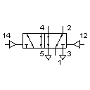 The pneumatic valve is controlled by applying reciprocal pilot pressures at connection 14 (flow passes from 1 to 4) and connection 12 (flow passes from 1 to 2). The valve's operating position remains until an opposite signal is received by the valve.