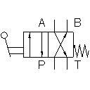 In normal position the connection P is open to B and A to T. When manually actuated the valve is set to parallel position.
