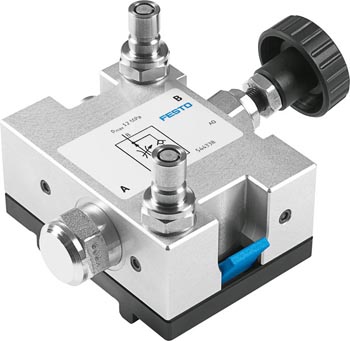 The flow control valve ensures a constant flow rate in the flow direction A->B independent of the load pressure on B.