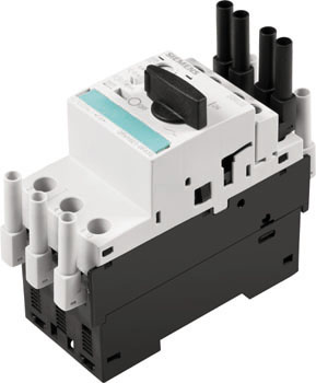 Motor circuit breaker are used to protect connected motors against overloading. They’re equipped with a thermal trigger for minimal overcurrent and an electromagnetic trigger for short-circuits. This motor circuit breaker has a 10 A tripping class. The thermal trigger starts to trip as of an amperage of 1.2 times nominal current and the electromagnetic trigger is tripped as of 7.2 times nominal current. If overloading occurs in any single phase, all three phases are interrupted when the circuit breaker is tripped. The circuit breaker has to be closed manually after tripping.