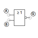 The output Q is only set to 1 if the value 0 is present at all inputs (A, B). The function of a NOR gate corresponds to that of an OR gate, whereby the output level is inverted by a NOT gate.
