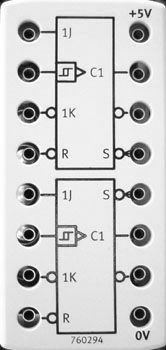 The T flip-flop (toggle flip-flop) has only one input T. If there is a positive edge at input T from 0 to 1, the outputs change (toggle) their states. The initial state of the outputs when the supply voltage is applied is random. However, Q1 = not Q2 always applies.