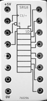 With the shift register, a stream of serial bits can be loaded in the registers R1 to R8, which are output in parallel via the inputs Q1 to Q8.