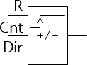 Depending on the configuration of the input Dir, an internal value is counted up or down through an input pulse. The output is set when the configured count value is reached.